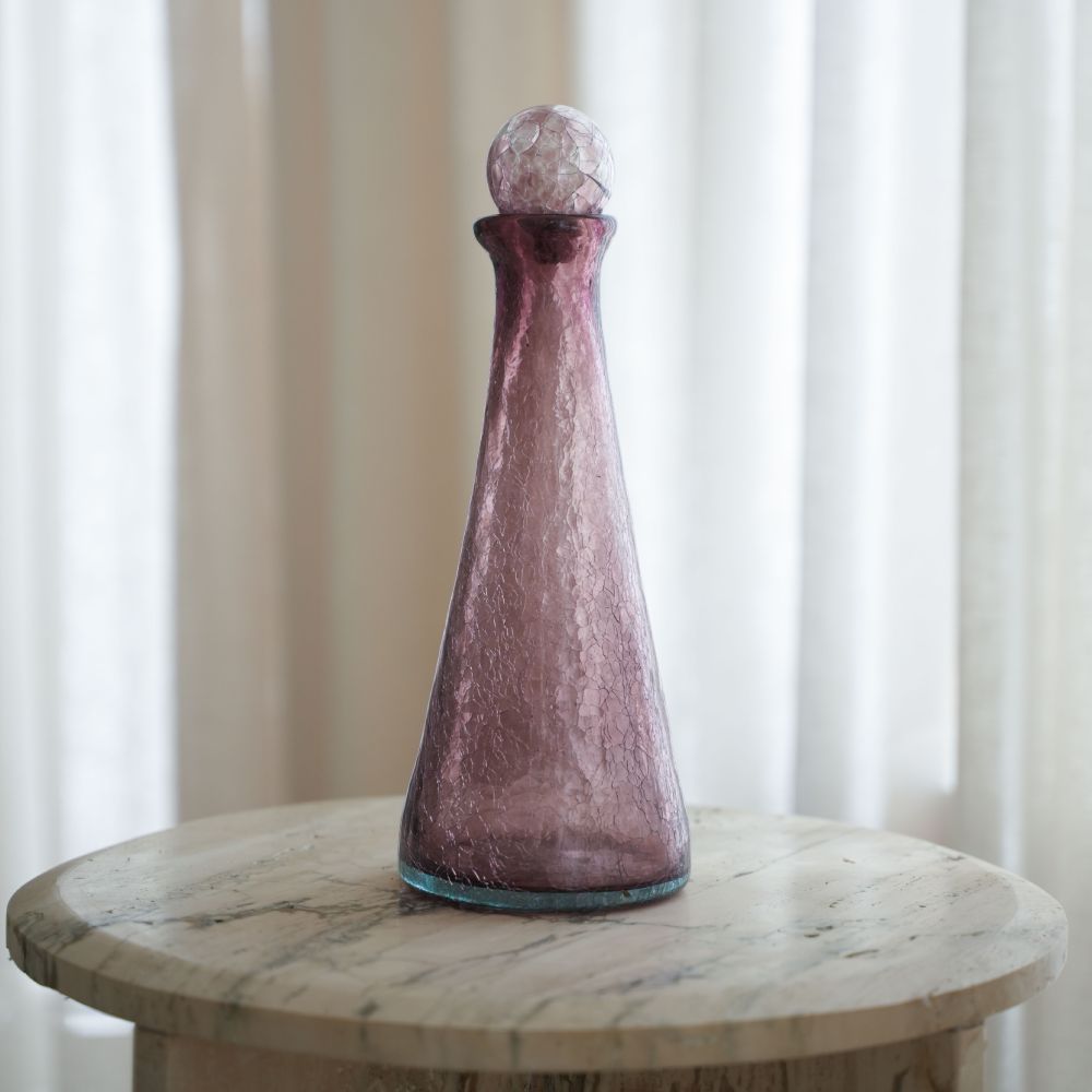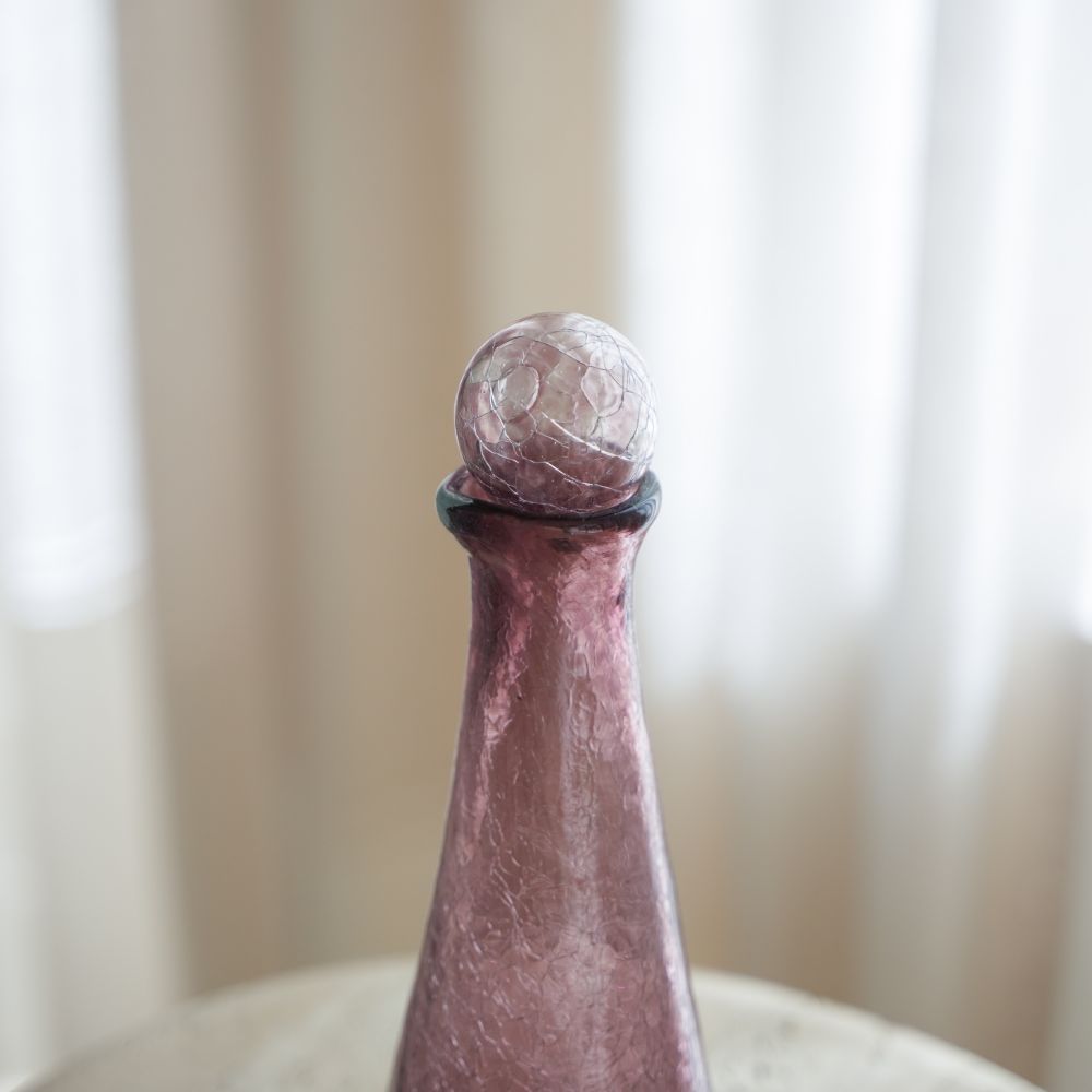 Carafe en verre soufflé, couleur violet foncé- fait main