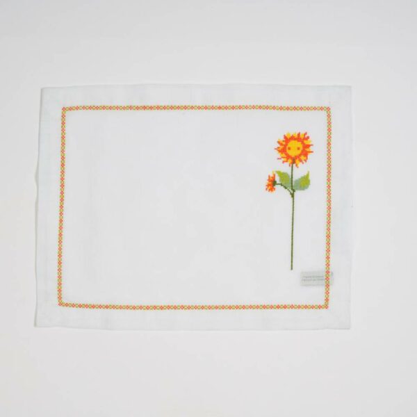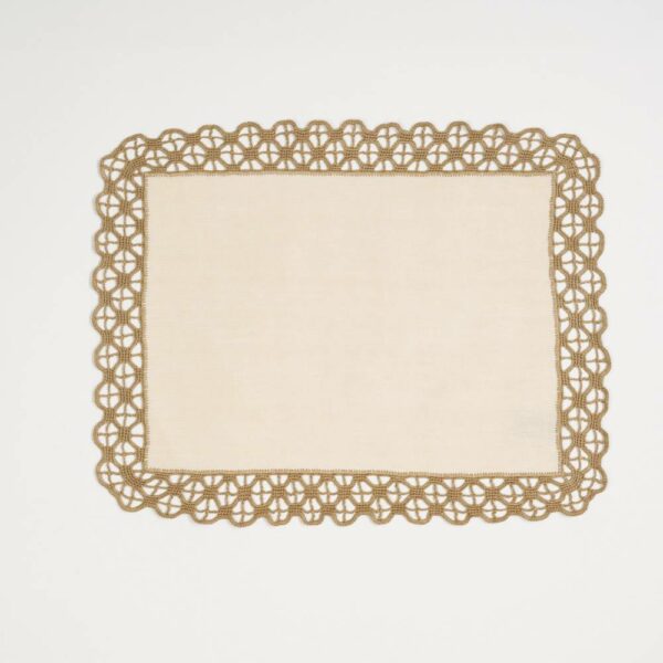 Un Fond de plateau « Chaima » en lin bleu – point « tayel »
