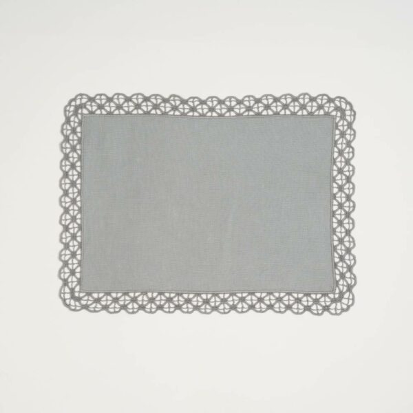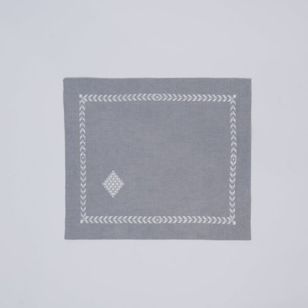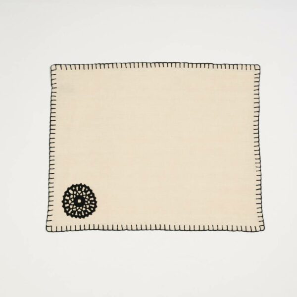 Nappe à thé «Epines» en lin en point Relief fait main brodée au fil DMC avec serviettes assorties