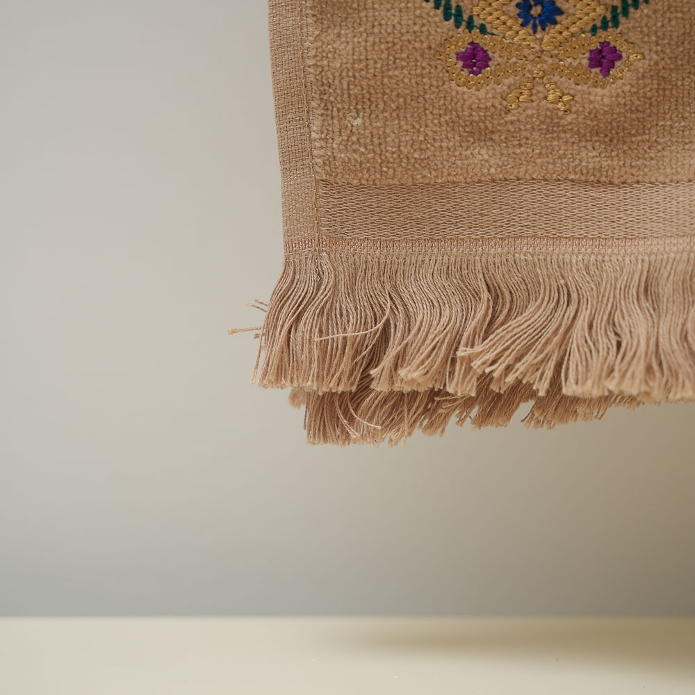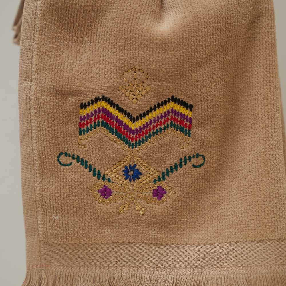 Serviette de bain « marron foncé » brodée à la machine, motif traditionnel.