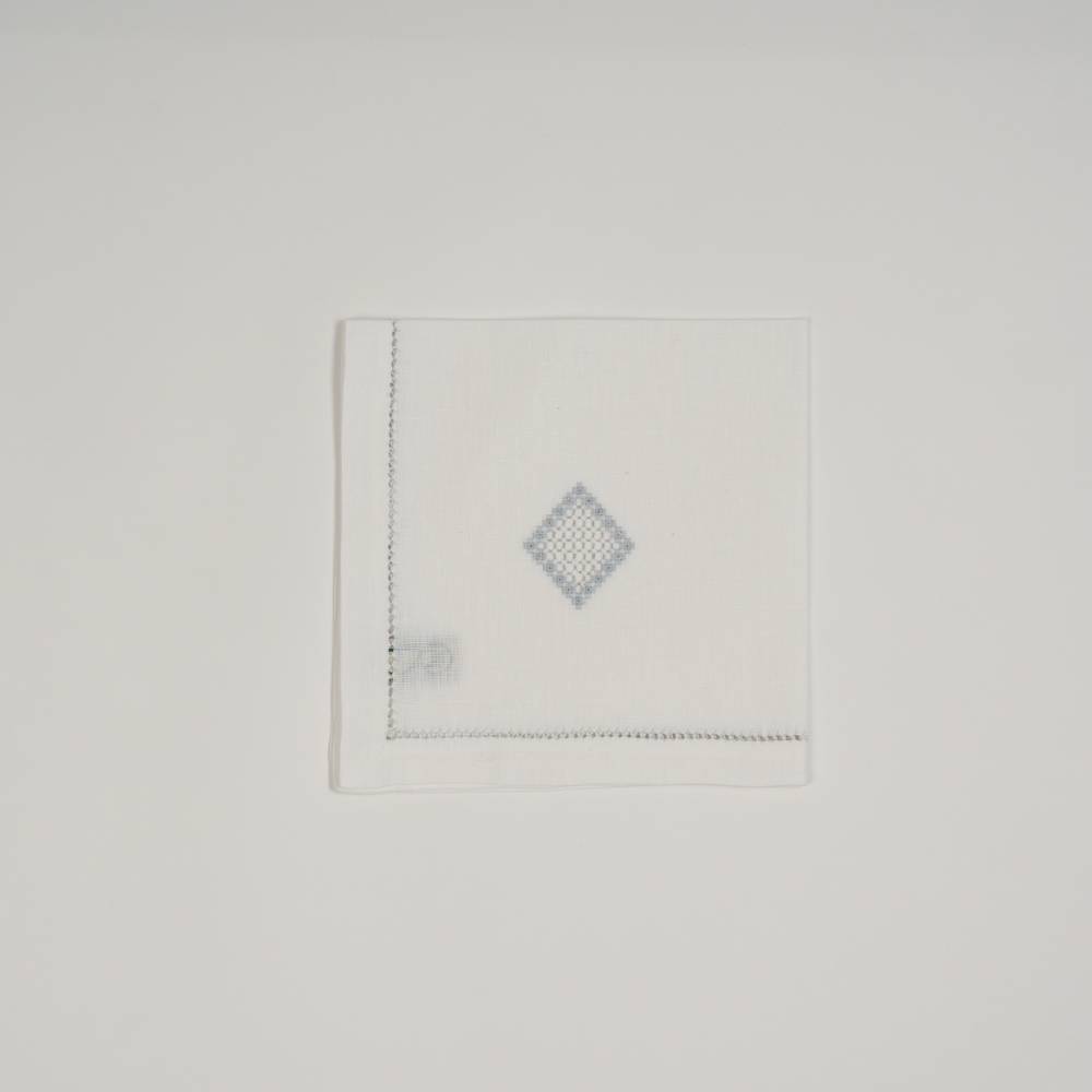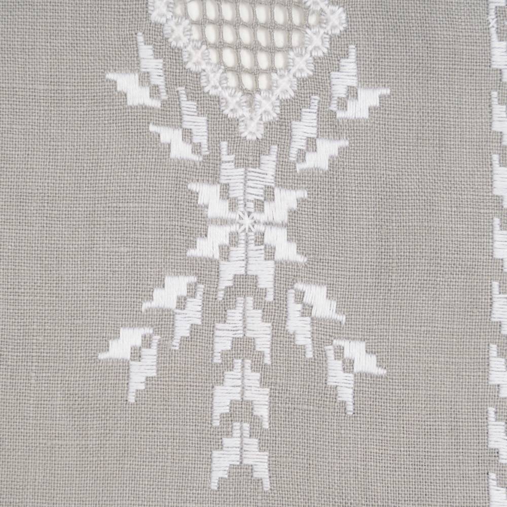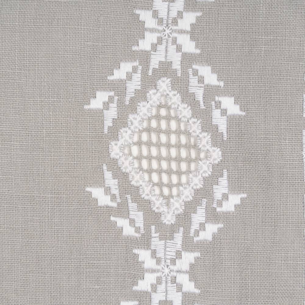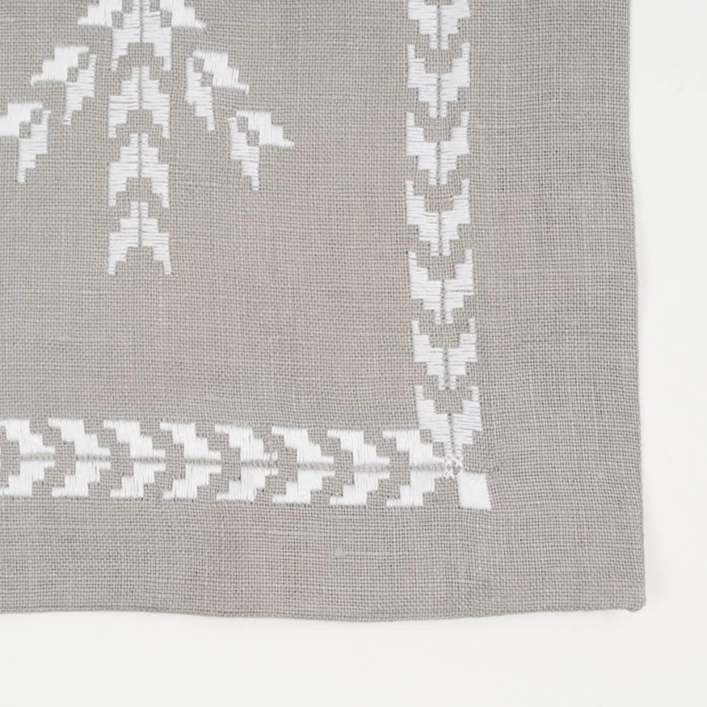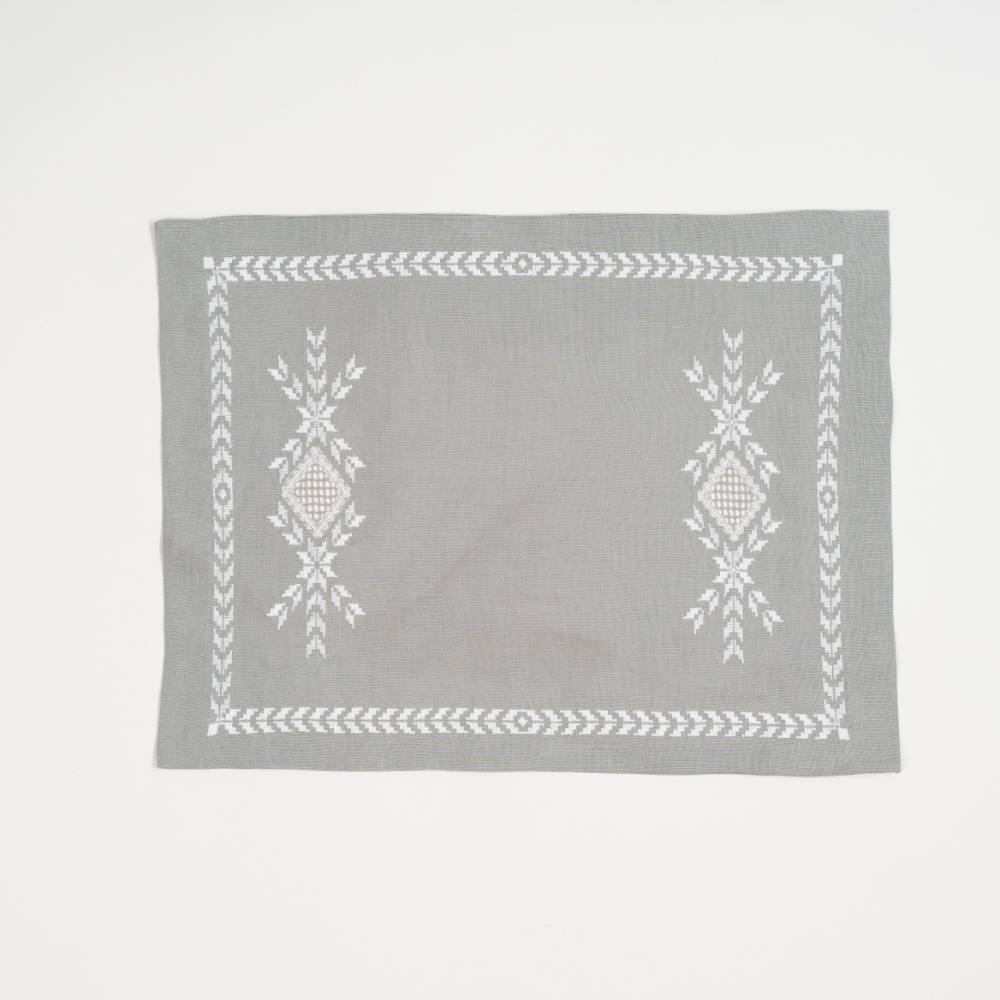 Pack de six sets de table « Norvège 1» en lin gris, point de « Norvège » faits main, avec serviettes assorties.